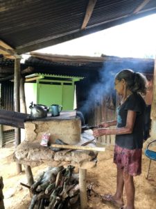 Ella comenta que el eco-fogón ha sido de mucha ayuda, utiliza menos